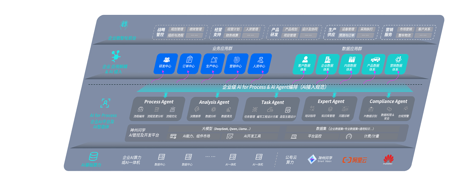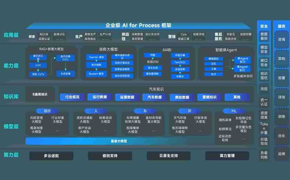 端到端的一站式AI工作空间深度融合了从企业战略规划到日常经营的全流程业务板块,,,定向解决车企内部领域多、、部门多、、、、链条长、、、、场景碎片化等难题,,,支持车企快速构建以AI为核心的生产力写作体系,,,,实现任务执行与AI能力的无缝集成与交互